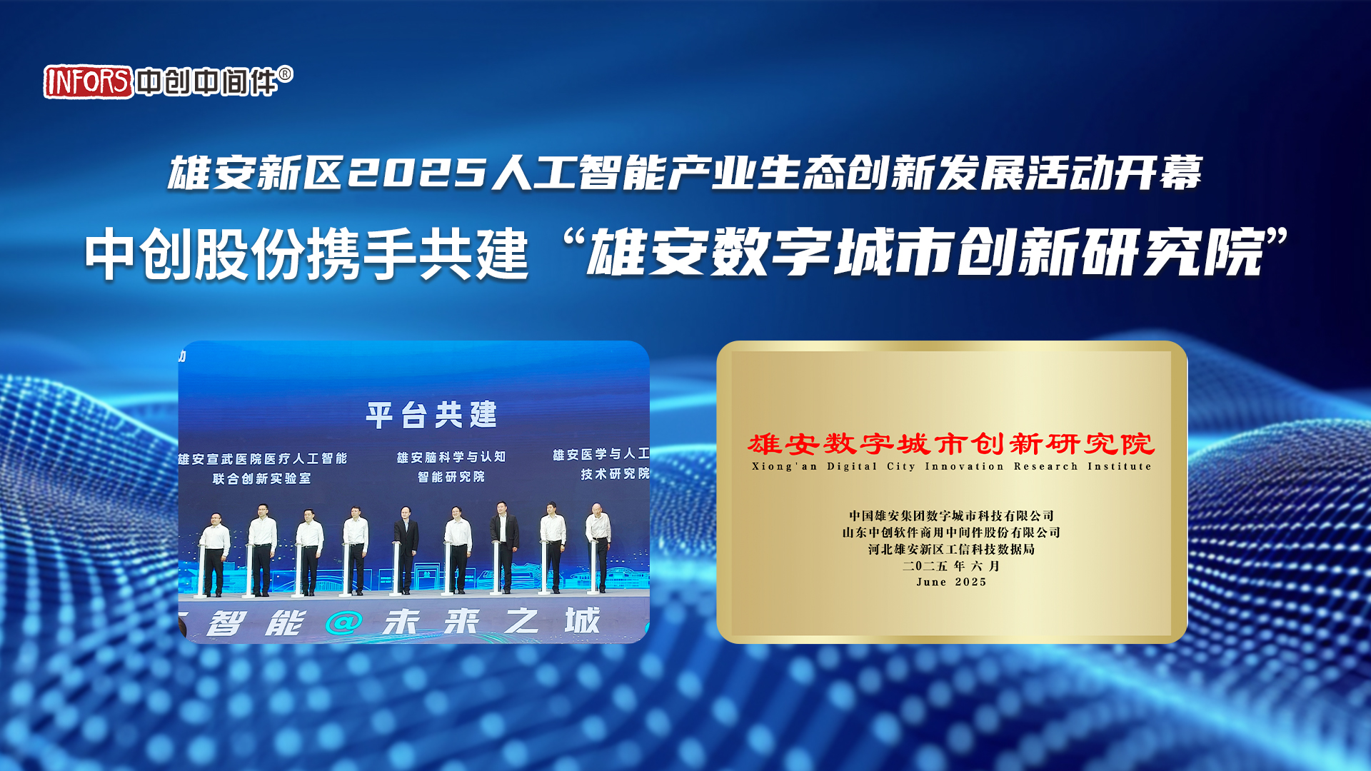 活动期间,山东中创软件商用中间件股份有限公司(中创股份,股票代码:688695)与中国雄安集团数字城市科技有限公司正式签约,联合共建“雄安数字城市创新研究院”。研究院将在雄安新区工信科技数据局的指导下,采用“企业化管理+市场化运行”的创新机制,高起点打造具有广泛影响力的新型研发机构,重点面向数字城市、低空经济等领域,聚焦雄安人机物创新融合场景,融通科研开发体系与产业应用体系,加强人工智能、可信安全等关键核心技术攻关,支撑雄安新区数字城市建设,并为全国数字城市发展提供可复制、可推广的“雄安方案”。中创股份景新海董事长作为特邀嘉宾,与中科院院士姚期智等院士专家及中兴、百度等重点企业代表一起,出席了张国华书记主持的“雄安新区2025人工智能创新发展座谈会”,并在会上做主题发言。