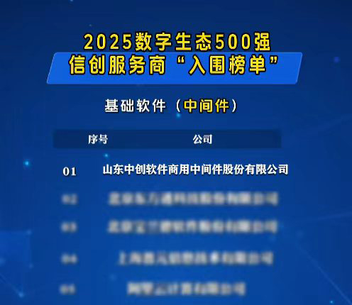 近日,由BP商业伙伴主办的“2025数字生态大会”圆满落幕,同期“2025数字生态500强”榜单正式揭晓。山东中创软件商用中间件股份有限公司(以下简称:中创股份)凭借强劲的增长动能与信创领域的深厚积淀,成功入选“信创服务商”、“盈利能力百强”、“企业成长百强”榜单。此次入围,是市场与行业对中创股份综合实力与核心价值的高度认可。