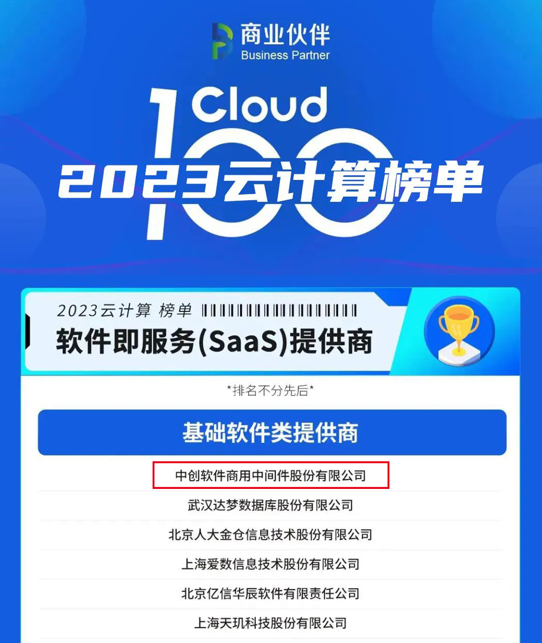 其中,中创股份成功入选“软件即服务(SaaS)提供商”基础软件类提供商名单,成为唯一入选该榜单的中间件厂商。