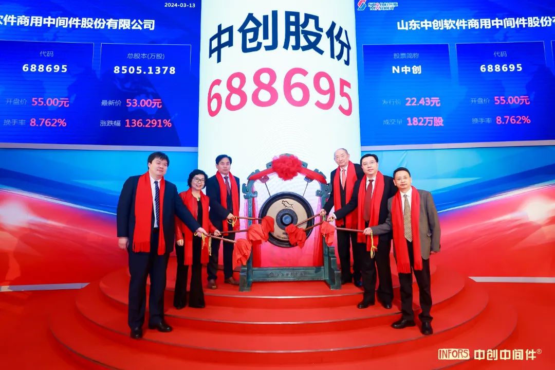 3月13日,山东中创软件商用中间件股份有限公司(股票简称:中创股份;股票代码:688695)成功在科创板上市。中创股份是基础软件中间件产品与服务提供商,主要面向党政、国防、金融、能源、交通等国民经济重点行业领域提供中间件软件产品研发、销售、中间件定制化开发和中间件运维服务。
